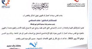كتب – علاء حمدي قدم مجلس سيدات أعمال أم القيوين بدولة الامارات العربية المتحدة الشكر والتقدير الي سعادة المستشار الدكتور خالد السلامي رئيس مجلس ادارة جمعية اهالي ذوي الاعاقة وذلك لمشاركته القيمة والهادفة في المنتدي الاجتماعي الثاني الذي نظمه برنامج علم الاجتماع بكلية الآداب والعلوم بجامعة أم القيوين بالتعااون مع …