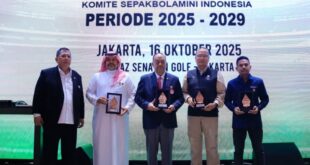 شهدت العاصمة الإندونيسية جاكرتا احتفالية تنصيب مهيبة، جرى خلالها اعتماد الدكتور يان عابدين رئيسًا رسميًا للاتحاد الإندونيسي لكرة القدم المصغرة حتى عام 2029، وذلك بعد التصديق على مجلس إدارته من قِبل رئيس اللجنة الرياضية الإندونيسية الجنرال مارسيانو نورمان، وبمباركة وزارة الرياضة الإندونيسية. وحضر الحفل وكيل وزارة الرياضة السيد خير الأضحى، …