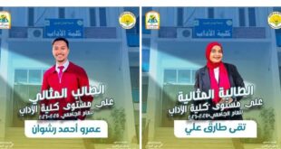 “رشوان وتقى ” يتوّجان بلقبي الطالب والطالبة المثاليين بكلية الآداب – جامعة الوادي الجديد
