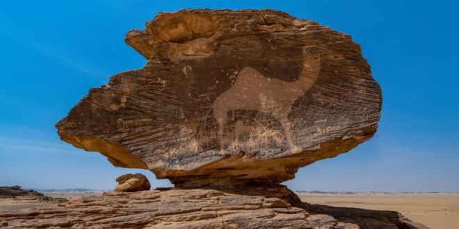 ويستعرض الجناح مكونات موقع “منطقة حِمى الثقافية”، الذي يحتضن أكثر من 550 نقشًا حجريًا تعود لآلاف السنين، ويُعد أحد أكبر المتاحف المفتوحة للنقوش الصخرية في المملكة، إذ يمتد على مساحة تتجاوز 500 كيلومتر مربع، وتحكي الفنون الصخرية قصص حياة الإنسان الاقتصادية والاجتماعية والبيئية، وتوثق العادات والتقاليد قبل الإسلام، إضافة إلى الحياة الفطرية والمسارات الجبلية والصحراوية، وما تحمله من مفاهيم استدامة بيئية وتراث إنساني طبيعي.