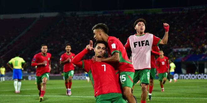 حقق أشبال الأطلس فوزًا تاريخيًا على البرازيل (2-1)، يوم الخميس 2 أكتوبر 2025، في الجولة الثانية من كأس العالم لأقل من 20 سنة. وبفضل هذا الانتصار، ضمن المغرب تأهله إلى دور الـ16 قبل خوض الجولة الأخيرة.