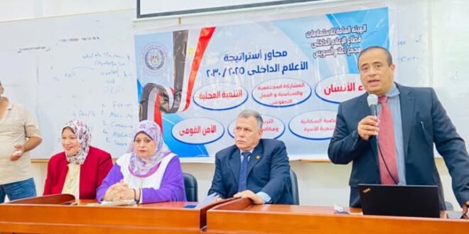 حاضر فيها الاستاذ الدكتور /اشرف جلال عميد كلية الإعلام ج السويس بحضور اللواء ا/ح/الدكتور تامر شمس الدين رئيس الإدارة المركزيه لإعلام القناة وسيناء والأستاذة /ايناس. يوسف مدير عام اعلام القناة