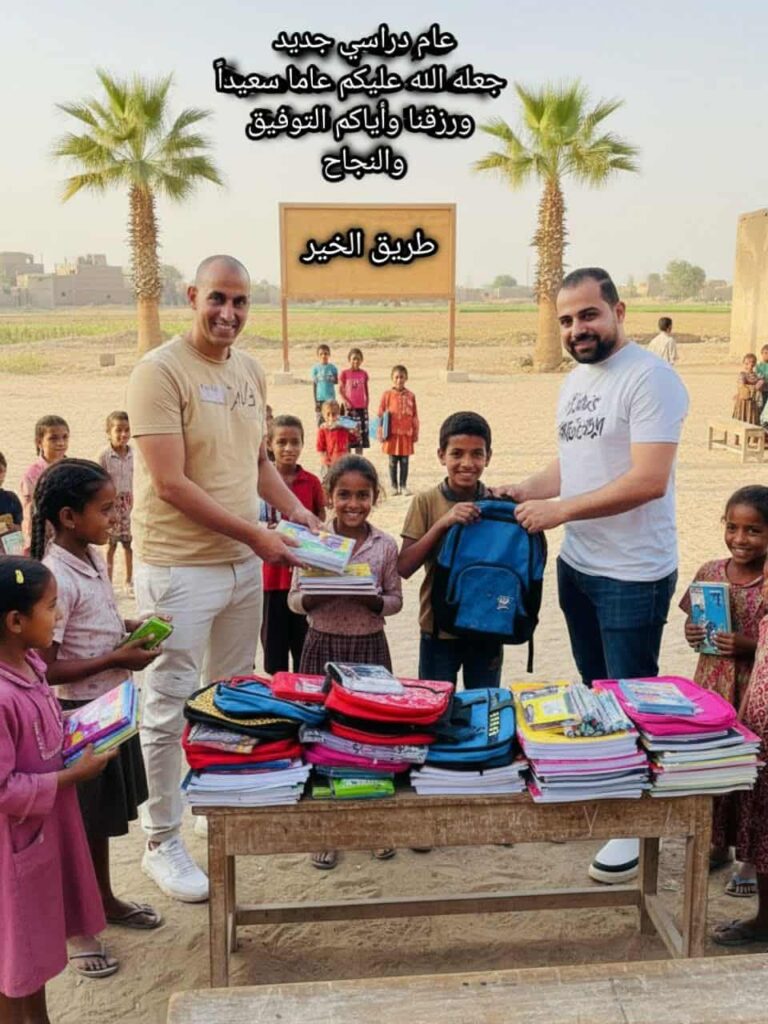 طريق الخير بالسويس بقيادة استاذ محمد ربيع ومحمد غريب يتقدمون بأدوات المدارس لطلابه الأيتام والأرامل والغير القادرين لإدخال السرور لديهمكما يتوجهون بالشكر الجزيل والتقدير والاحترام والعرفان إلى كل المساهمين والداعمين و المتبرعين لإدخال السرور على الأطفال والمحتاجين.