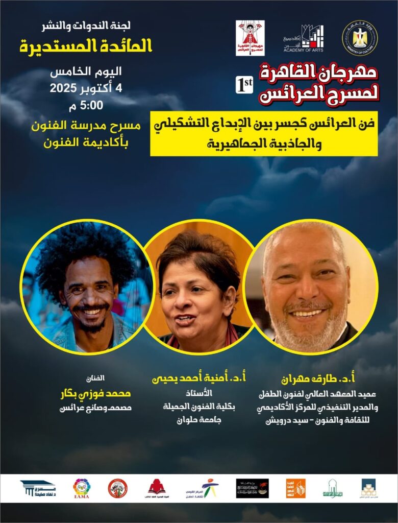 بعد مرور خمسة أسابيع على انطلاقها، أسدل «مهرجان القاهرة لمسرح العرائس» الستار عن المائدة المستديرة الأخيرة والتي أقيمت تحت عنوان «فن العرائس كجسر بين الابداع التشكيلي والجاذبية الجماهيرية» ضمن فعاليات الدورة الأولى من المهرجان.حيث ادار المائدة فنان العرائس هشام علي، في قاعة عاطف عوض بمدرسة الفنون، والتي تحدثت بها الدكتورة امنية احمد يحيى الأستاذ بقسم الديكور بكلية الفنون الجميلة جامعة حلوان، ووجهت الشكر لأكاديمية الفنون لتنفيذها هذا المهرجان لإحياء فن العرائس في مصر.وتطرقت امنية الى اقسام الكلية المعنية بدراسة العرائس حيث انه في الديكور تتم عملية تصميم العروسة وعلاقتها بالدراما والسيناريو والشخصيات حسب صاحب المشروع، اما في شعبة النحت تكون العرائس والماريونت وتحريكها بالإضافة الى الأقنعة، اما الأزياء فتكون في شعبة الديكور أكثر، ونحن نسعى للتكامل بين القسمين داخل الكلية.وتحدث الدكتور طارق مهران عميد المعهد العالي لفنون الطفل والمدير التنفيذي للمركز الأكاديمي للثقافة والفنون- سيد درويش، وقال نحن بصدد حدث هام جدا وهو إقامة مهرجان للعرائس في مصر، ولدينا في الاكاديمية معهد للطفل يدرس لطلاب دراسات عليا من مختلف الكليات مثل طلاب تحمل بكالوريوس موسيقى ونحن نضيف لهم ونعيد تذكيرهم بالقواعد الأساسية ثم نحثهم على كسر هذه القواعد في التعامل مع الطفل.وأضاف مهران ان الالحان الشعبية منذ عام 1800 وحتى الان تستخدم في أغاني الأطفال وموسيقى الطفل وكان أشهر من بدأ هذه الفكرة هو مؤلف الموسيقي المجري «بيلا بارتوك»، واعتبرها مهران منهج تدريس للمحافظة على التراث واستغلال الالحان الشعبية فمن بين 1500 لحن شعبي مصري حاول مهران عمل دراسة عليهم وخرج بـ 30 لحنا وفقا لهذا المنهج ووضعهم في رسالة الدكتوراه 1999/2000.وأشار مهران الى ان الالحان الشعبية لها قوانين ونغمات معبرة للأطفال في مصر، فمثلا مسرحية «اللعبة» لهاني البنا 1989 جمعت عروض لموسيقى الطفل بالاستعانة بفريق من الاوبرا، لذلك انا بطلب من تلامذتنا انهم يشطحوا لبعيد، ولكن بأسلوب علمي لتطوير كل ما هو قديم، وربط التراث وتصنيفه وفقا لعوامل اختيار اللحن وكيفية اخرا نتائج منه.وكشف مهران: ان موسيقى معبد الكرنك التي ألفها مأخوذة من نفس المنهج للموسيقى الفرعونية المكونة من: الات نحاسية وطبول وهارب، ولكن بتخيل طفولي.واكد مهران على ضرورة العمل في سياق جماعي حين تريد تنفيذ عمل للأطفال خاصة وان التعامل مع الطفل المصري والاعمال الموجهة اليه هو خط احمر وامن قومي لا يجب التساهل معه.فيما ذكرت الدكتورة امنية ان العروسة لها دور فعال في التربية فهي تمثل النماذج التي يراها الأطفال في الأفلام او على المسرح لذلك فانا ادعو «مسرح العرائس» لتصنيع العرائس المشهورة وبيعها ليستطيع الطفل الحصول عليها اذا حبوها وتعلموا منها سلوكيات جديدة ستظل معهم إذا احتفظوا بها.وقد تحدث محمد فوزي بكار وهو مصمم وصانع عرائس، وعبر عن سعادته بالتواجد في هذه المائدة مع أساتذة كبار في المجال، وقال انه من الناحية التشكيلية فهو يرى العروسة كعمل فني في الأساس قبل ما يضيف لها روح الشخصية من حركة او ميكانيزم وما هي خاماتها وانواعها.وأضاف بكار: كان عليا معرفة كيف تتحرك العروس وكيف تمثل وهذه اللحظة كانت مرحلة انتقالي من فنان تشكيلي لفنان عرائس لأنه عالم كبير وانا قررت ادخله رغم انه مش مطلوب لكني اكتشفته ورد فعل الناس سواء في مدينة الواحات او هنا بالقاهرة حين يروا العرائس يقولوا لي انها شبه الناس.واستطرد بكار في حديثه انه عمل على أسلوب النحت التعبيري وعلى أنواع مختلفة خاصة «عرائس المنضدة» وهي غير شائعة ومهدور حقها في المنطقة العربية لكن أشهر دولة تستخدمها هي تونس، وهذه النوعية من العرائس تهتم كثيرا بالعمل الجماعي لان عروسة واحدة يحركها أكثر من شخص وبالتالي هي جماعية.وبعد ذلك روى «بكار» قصته مع العرائس الكبيرة حينما عمل في بريطانيا في 30 ليلة عرض واكتشف من الكواليس كيفية تع