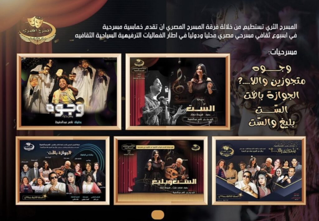 بمناسبة الاحتفال بانتصارات أكتوبر المجيدة، تختتم فرقة المسرح المصري اليوم الخميس عروض خماسيتها المسرحية التي قُدمت خلال الموسم الصيفي، وذلك من خلال سهرة كوميدية غنائية تُقام بحضور الصحفيين والإعلاميين مجانًا بصحبة أسرهم، بأسبقية الحضور وبعد التنسيق.وتُعرض خلال الليلة عملان من تأليف وإخراج الفنان ناصر عبدالحفيظ (مؤسس فرقة المسرح المصري): • الساعة 7 مساءً: العرض الكوميدي الجوازة باظت • الساعة 9 مساءً: العرض المسرحي الستويأتي تنظيم الليلة وفق تقليد حفلات السيدة أم كلثوم، التي تُقام مساء الخميس الأول من كل شهر، في إشارة فنية تحافظ عليها الفرقة ضمن برنامجها المسرحي.وأكدت إدارة الفرقة أن الدعوة موجهة خصيصًا للصحفيين والإعلاميين تقديرًا لدورهم في دعم الحركة الثقافية والمسرحية، مشيرة إلى أن هذه الليلة تمثل الختام الرسمي لعروض الموسم الصيفي