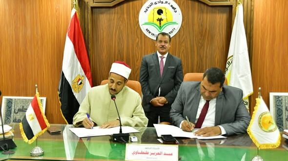 وافق مجلس جامعة الوادى الجديد على تجديد بروتوكول التعاون بين الجامعة وقطاع الدعوة بالأزهر الشريف في إطار الشراكات المؤسسية الهادفة ممثلًا في مجمع البحوث الإسلامية الأمانة العامة للدعوة والإعلام الديني منطقة الدعوة والإعلام الديني بمحافظة الوادي الجديد