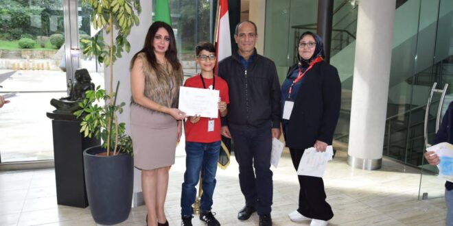 وفي ختام اليوم، قامت الدكتورة رانيا يحيى بتكريم جميع الطلاب المشاركين من المدرسة الليبية التي تضم جنسيات عربية متعددة، حيث تم توزيع شهادات تقدير لجميع المشاركين وأيضا لمديرة المدرسة الدكتورة نجاة عقيلة.