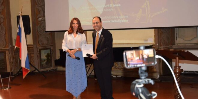 وتخلل البرنامج عرض فني من الفلكلور المصري قدّمته جمعية أرتميدي، أضفى على الأمسية طابعًا تراثيًا أصيلاً، حيث تم تكريم مديرة الفرقة دانييلا ألوتا، لدورها في إحياء الفنون الشعبية المصرية وتقديمها للجمهور الإيطالي والدولي.