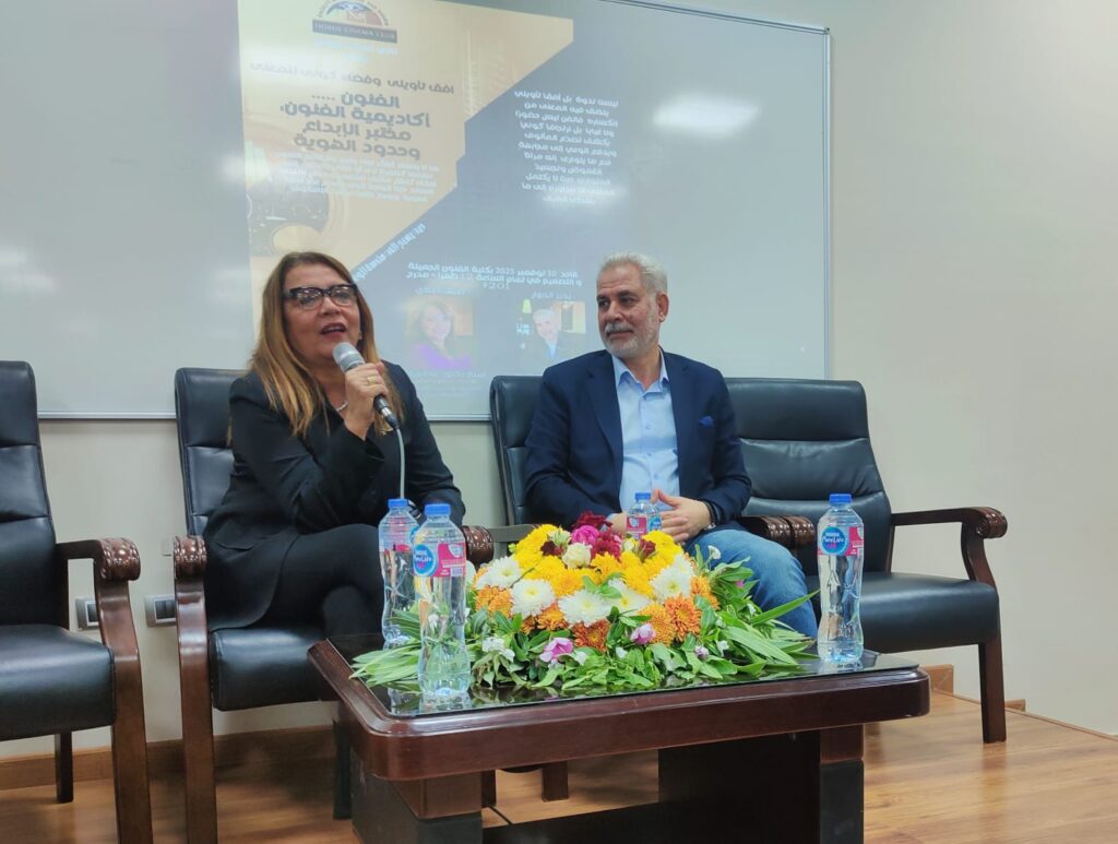 فى لقاء ثرى تتحول فيه الفنون إلى أسئلة مفتوحة لا تنتظر إجابة، ويغدو الإبداع طيفًا مراوغًا يكسر حدود المألوف ليمنح المعنى آفاقًا جديدة…استضافت كلية الفنون الجميلة والتصميم بجامعة حورس بدمياط الجديدة الأستاذة الدكتورة غادة جبارة رئيس أكاديمية الفنون وأستاذ المونتاج بالمعهد العالى للسينما، وذلك فى ندوة هامة حملت عنوان:”أكاديمية الفنون… مختبر الإبداع وحدود الهوية الثقافية”.وقد أدار اللقاء الدكتور عمر عمران عميد الكلية، فى حوار أثمر رؤى ملهمة للطلاب حول مستقبل الفنون، ودور الأكاديمية فى صياغة هوية ثقافية معاصرة تنطلق من جذور أصيلة وتطلعات مستقبلية.