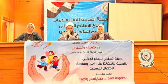 ونظم مجمع اعلام السويس ندوة حول الوقاية من التحرش الخطوة الأولى لحماية الطفل حاضر فيها الشيخ محمد محمود صبرى إمام وخطيب بالاوقاف والدكتورة هبة حسن عضو فريق مبادرة بالوعى هدف واستشارى الصحة النفسية والإرشاد الأسرى