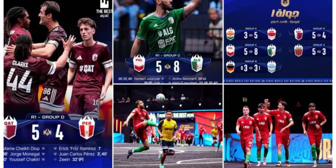 أما المنتخب القطري، فحقق فوزاً مثيراً على منتخب بيرو بنتيجة (5–4) ضمن المجموعة الرابعة، بفضل تألق يوسف شاكيري الذي أحرز ثلاثة أهداف، إلى جانب بصمة زكريا زروال الذي صنع تمريرتين حاسمتين، في مباراة حبست الأنفاس حتى صافرتها الأخيرة.