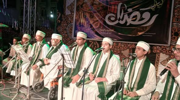 بينما تفاعل الجمهور مع العرض الفنى والذى قدمته فرقة أسيوط للفنون الشعبية بقيادة الفنان محمود يحيى قدمت خلالها عرض ” التنورة ” واختتمت فعاليات ثانى الليالى الرمضانية بعرض فنى لفرقة المداح بقيادة المايسترو نصر الدين احمد وبإشراف الفنان ياسر العربى حيث قدمت الفرقة باقة من الابتهالات والتواشيح الدينية منها ” قمر سيدنا النبي” و ” حبيب الله ” و ” سلام الله يا طه ” باشراف مايكل يعقوب مدير مسرح أسيوط ، وحمدى قطب ووسام درويش مسئول الشئون الفنية لمكتب المدير العام والتى نالت إعجاب الجمهور