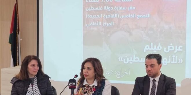 نظمت سفارة دولة فلسطين بالقاهرة عرضًا خاصًا للفيلم الوثائقي “لأنها فلسطين It is all about Palestine”، بحضور المنتجة والمخرجة دينا أبو زيد وحشد من الفنانين والمثقفين المصريين والفلسطينيين والجالية الفلسطينية وممثلين عن الطلبة والفصائل الفلسطينية من اقليم حركة فتح بمصر، وذلك في مقر المركز الثقافي للسفارة بالتجمع الخامس.