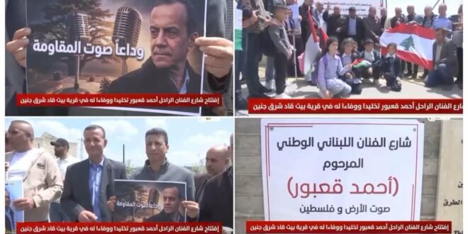 افتتحت بلدية مرج بن عامر في محافظة جنين شارعًا يحمل اسم الفنان اللبناني المناضل الراحل أحمد قعبور، تكريمًا لمسيرته الفنية والوطنية، في مشهد وطني أعاد إحياء الصوت الذي رافق القضية الفلسطينية وغنّى للأرض ولفلسطين.