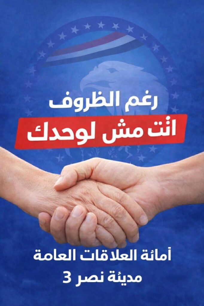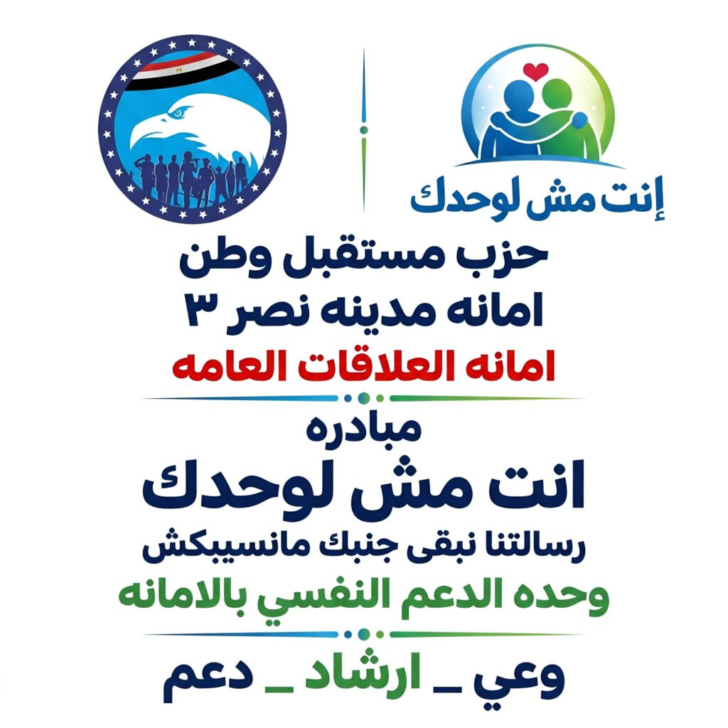 تُعلن أمانة العلاقات العامة – قسم مدينة نصر ثالث – حزب مستقبل وطنعن إطلاق مبادرة “انت مش لوحدك” للدعم النفسي. تأتي المبادرة لتقديم الدعم والمساندة لكل من يحتاج، من خلال:عقد ندوات توعوية متخصصةالتواصل المباشر عبر صفحة الأمانة على فيسبوكالتواصل الهاتفي (سيتم الإعلان عنه قريبًا) على أن يتم الإعلان قريبًا عن موعد أولى الندوات الخاصة بالمبادرة.