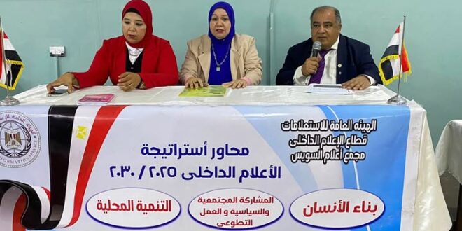 نظمت إدارة اعلام السويس ندوة حول المتغيرات الإقليمية والدولية الراهنة وتأثيرها على الأمن القومى بمعهد القناة العالى للهندسة والتكنولوجيا بالسويس فى إطار استراتيجيه الإعلام الداخلى ٢٠٣٠/٢٠٢٥ محور الأمن القومى لقطاع الاعلام الداخلى الهيئة العامة للاستعلامات برئاسة معالى السفير علاء يوسف رئيس الهيئة العامة للاستعلامات وبتوجيهات الدكتور أحمد يحيى رئيس قطاع الإعلام الداخلى