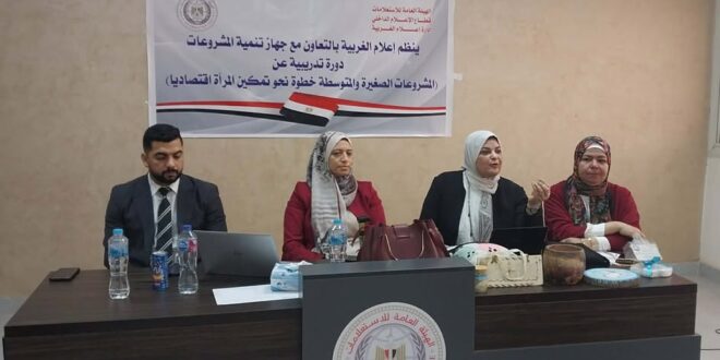 فى إطار الدور التنويرى والتثقيفى الذى تقوم به الهيئة العامة للاستعلامات تحت رئاسة معالى السفير علاء يوسف وبتوجيهات من الدكتوراحمديحي رئيس قطاع الإعلام الداخلى نظم إعلام الغربية بالتعاون مع جهاز تنمية المشروعات دورة تدريبية عن “المشروعات الصغيرة والمتوسطة خطوة نحو تمكين المرأة اقتصاديا” فى الفترة من الأحد ٢٠٢٦/٤/١٩ إلى الإثنين ٢٠٢٦/٤/٢٠ فى قاعة مركز النيل بمجمع إعلام الغربية بحضور طلاب كلية الخدمة الاجتماعية بكفر الشيخ.
