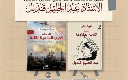 ويشهد اللقاء مناقشة كتابين جديدين لقنديل يحملان عناوين لافتة تعكس طبيعة اللحظة السياسية الراهنة، وهما: على باب الحرب العالمية الثالثة، الذي يطرح قراءة تحليلية لاحتمالات الانفجار الدولي وتوازنات القوى العالمية، وهوامش على كتاب المقاومة، الذي يتناول مفهوم المقاومة في سياقاتها السياسية والفكرية المختلفة.