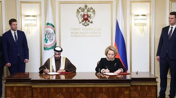 وقع معالي محمد بن أحمد اليماحي رئيس البرلمان العربي مذكرة تعاون مع معالي السيدة فالنتينا ماتفيينكو رئيسة المجلس الفيدرالي الروسي، شملت أربع مجالات رئيسية، الأول: تنسيق المواقف في المحافل البرلمانية الإقليمية والدولية المختلفة، والثاني: تبادل الخبرات التشريعية وزيارات الوفود البرلمانية بين الجانبين، والثالث: دعم تنفيذ مخرجات منتدى التعاون العربي الروسي القائم بين جامعة الدول العربية وروسيا الاتحادية، والرابع: إجراء مشاورات بشأن إنشاء آلية مؤسسية للتعاون البرلماني العربي-الروسي. وبخصوص هذه الآلية، اتفق الجانبان من حيث المبدأ على تأسيس منتدى برلماني عربي روسي، بحيث يمثل إطار مؤسسي لعلاقات برلمانية منتظمة بين الجانبين، واتفقا على البدء الفوري للمشاورات بشأن تأسيس هذا المنتدى في أقرب وقت.