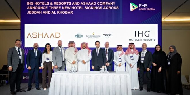 الرياض، المملكة العربية السعودية (12 مايو 2025): أعلنت مجموعة فنادق ومنتجعات IHG، إحدى المجموعات الفندقية الرائدة في عالم الضيافة، عن توقيع اتفاقية مع شركة أشاد، الشركة السعودية الرائدة في مجال التطوير العقاري، على هامش قمة مستقبل الضيافة 2025 بالرياض، وذلك لتطوير ثلاثة فنادق جديدة في المملكة العربية السعودية. وتنص الاتفاقية على إطلاق ثلاثة فنادق، وهي إنديغو بوابة جدة وإنتركونتيننتال الخُبر الحمراء وفوكو الخُبر الأندلس، مما يعزز التزام المجموعة تجاه الأهداف الطموحة للمملكة في قطاع السياحة ورؤية السعودية 2030.