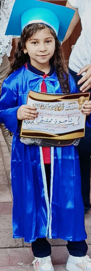 انتقلت ماجدة، التي أضاءت براءتها وبهجتها الحفل، بخطواتها الواثقة من مرحلة الطفولة المبكرة إلى عتبة المدرسة الابتدائية، حاملة معها إنجازاً جميلاً هو أولى حبات عقد نجاحها الأكاديمي.