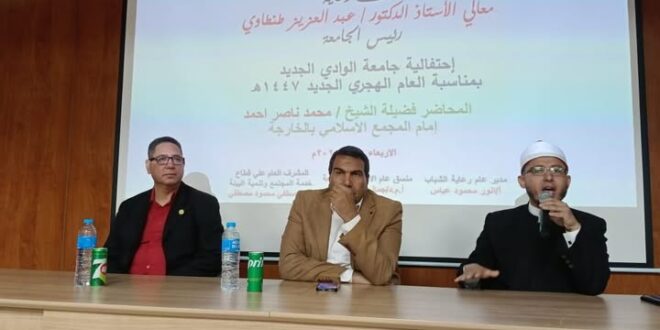 نظمت الإدارة العامة لرعاية الطلاب بالتعاون مع قطاع خدمة المجتمع وتنمية البيئة بالجامعة ندوة بقاعة المؤتمرات بكلية الطب بالجامعة بمناسبة الاحتفال بذكرى الهجرة النبوية وبداية العام الهجري الجديد 1447 تحت عنوان ” الهجرة دروس وعبر”