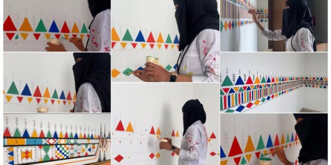 وجاءت اللوحة الفنية لتمنح المكان حيوية بصرية بألوانها الزاهية وثرائها الثقافي، ما نال إعجاب مديرة الأكاديمية وكافة الموظفات والزائرات، وأضفى على الأجواء طابعًا تراثيًا أنيقًا ومعاصرًا في آن واحد.