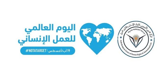 يحيي المركز العربي الأوروبي لحقوق الإنسان والقانون الدولي اليوم العالمي للعمل الإنساني الذي يصادف 19 أغسطس من كل عام، تقديراً للجهود المبذولة من قبل العاملين في المجال الإنساني في مختلف أنحاء العالم.
